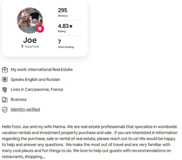 We’re Joe and Marina, founders of Carcassonne Concierge. For over 7 years, we’ve proudly served guests, homeowners, and clients with the same simple promise: care, reliability, and high standards—every time.